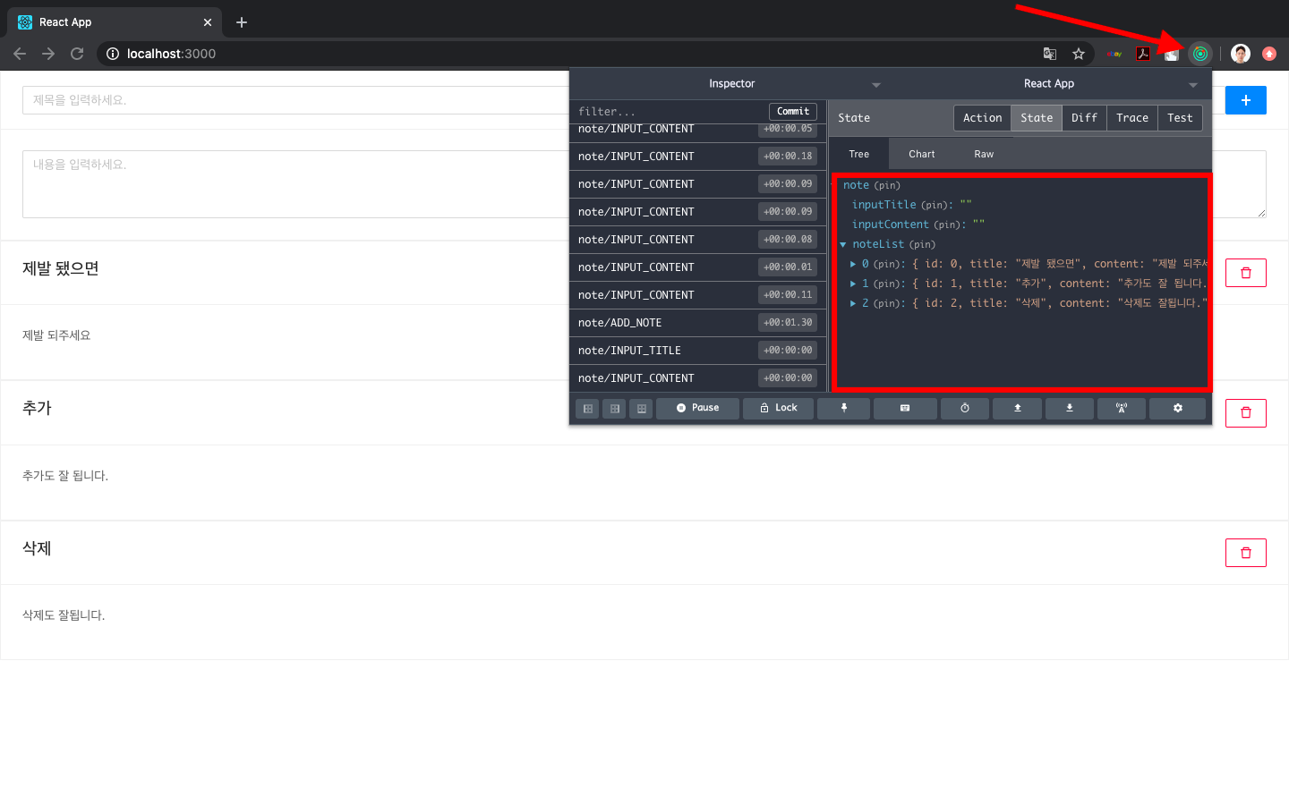- devtool은 크롬 extension입니다. redux의 상태, 상태변화 등에 대한 로그를 쉽게 확인할 수 있는 굉장히 유용한 툴입니다. 아래 링크에서 설치할 수 있습니다.