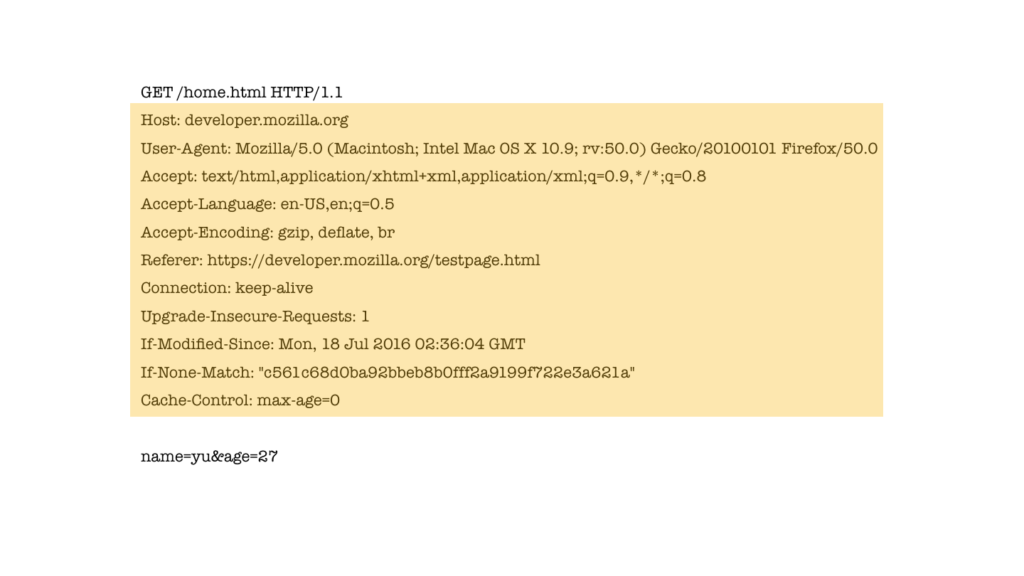 요청 해더들(Request Headers)에는 요청의 자세한 속성들이 포함되어 있다.